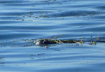 Here is a photo looking down Brian and Sandy's kayaks at the put-in. And, no, I have no idea what Brian was doing on his knees just before or after taking this photo.